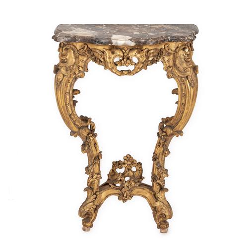 Fine English Mid 19th Century Rococo Revival Giltwood Console Table with Breccia Marble Top 1840-1860