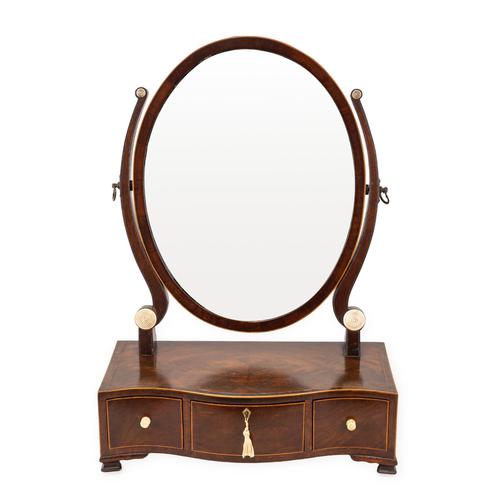 Regency Mahogany Serpentine Dressing Table Mirror, Three Drawers, Boxwood Stringing