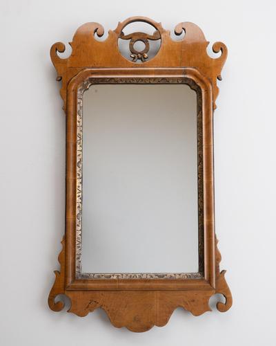 18th Century Chippendale-period Sycamore Rococo Fretwork and Gilt Small Mirror, Circa 1760–1780 (Georgian, George III)