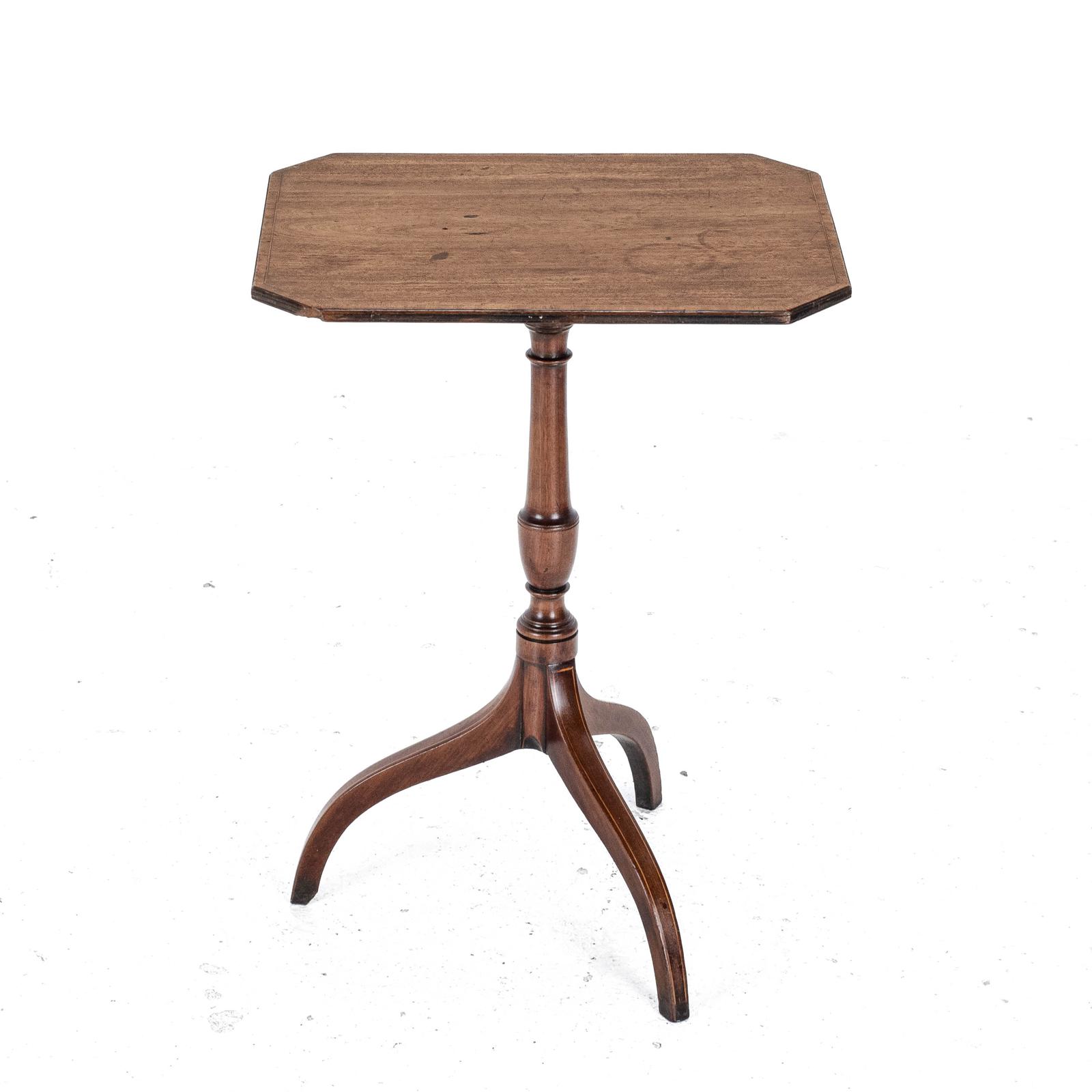 Georgian Octagonal Mahogany Inlaid Tilt Top Tripod Wine Side Table c.1800
